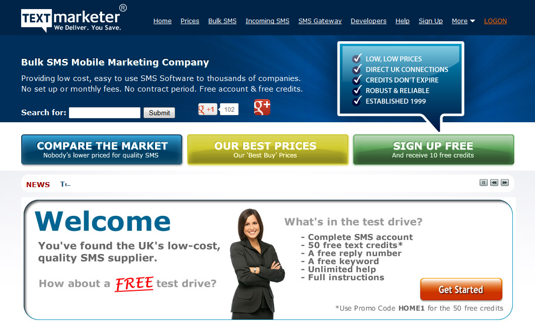 Text Marketer First established in 1999, Text Marketer (www.textmarketer.co.uk) is one of the UK's leading SMS & Mobile Marketing providers. Text Marketer offers several text marketing solutions including Bulk SMS, Short Code SMS, SMS APIs, Email-to-SMS, and more. Text Marketer's SMS pricing is pay-as-you-go based, starting at 3.7p per message (1- 9,999), with tiered discounts for higher volumes. Message credits never expire and there is no set-up fee, contract or minimum order size. 1 free randomly generated keyword is included free with all purchase, with custom standard keywords costing £25.00 + VAT per month and value keywords (keywords starting with a number) costing £5.00 + VAT per month.